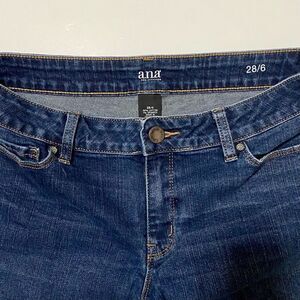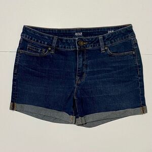 A.N.A. New Approach Denim Shorts ~ Blue Cuff Bottoms ~ Size 28/6 ~ Standard 5 Pocket with front zipper closure. In Excellent Gently Worn Condition ~ Please see photos for the exact item you will receive. A super cute pair of dark denim shorts!