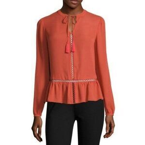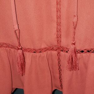 Salmon colored blouse in new condition. Tassels are beautiful with open trim down the chest and across the waist. Size XS.