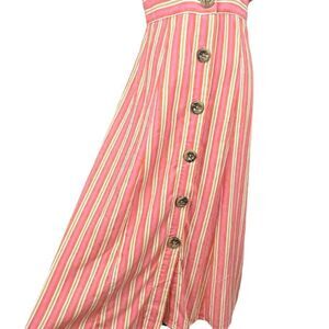 A.N.A Pink Striped Linen Blend Midi Dress S