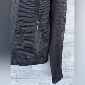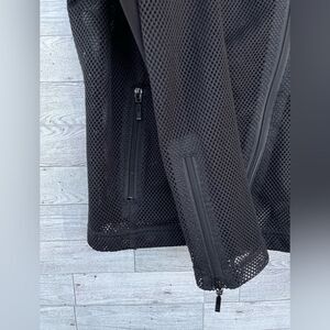 STRETCHY MESH PANELS FOR A FLATTERING, FEMININE SHAPE. AN ASYMMETRIC ZIPPER in very good condition
