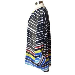 A.N.A Womens Plus Striped Tunic 3X Sheer Blouse V-Neck LS office festive, boho