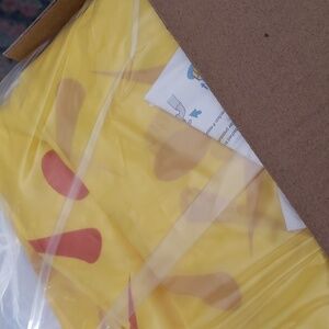 ANCESFUN yellow with red pattern low height splash pad. 67 inches, with a red pattern on the base and top of the pad. Water jets from all round. Quick connect to your own, not provided hose. Rated for ages 3+. Comes with 2 patches. Have fun in the 🌞 sun!