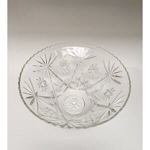 This is a beautiful Anchor Hocking Glass Company Star pattern glass punch bowl set. It comes with a punch bowl, pedestal bowl, and 24 cups. Excellent pre-owned conditions, no flaws