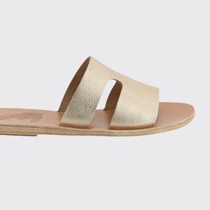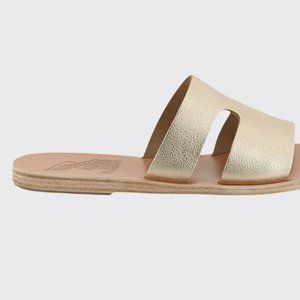 ANCIENT GREEK SANDALS Apteros Gold Cutout Leather Flat Slide Sandals Size 38/ 8