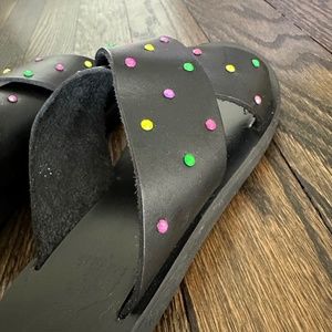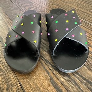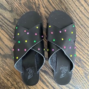 Amazing leather slide sandals with Multi-colored Swarovski Crystals!