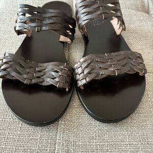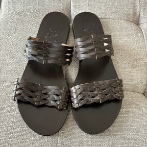 ANCIENT GREEK SANDALS Melia Meliva Woven Brown Toe Slip On Leather 39