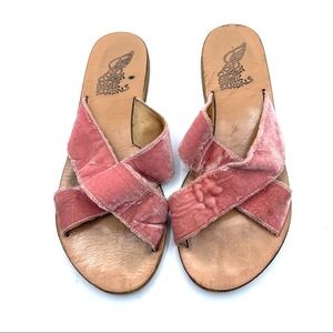 ANCIENT GREEK SANDALS Thais Dusty Pink Velvet slip on sandals sz 40