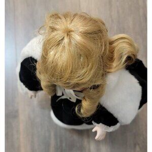 ANCO Porcelain Doll in Black Winter Cape Dress Faux Fur Muff with Stand 16"