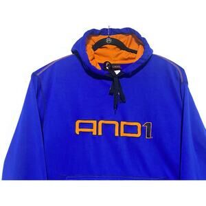 AND 1 Unlimited Pullover Hoodie Sweatshirt Men's Size XL Blue With Orange Trim