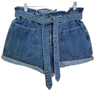 AND NOW THIS Paperbag Tie Waist Denim Shorts Size 28