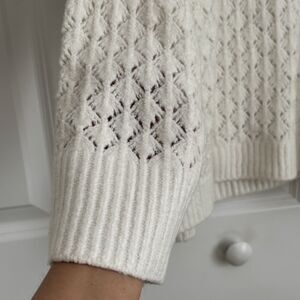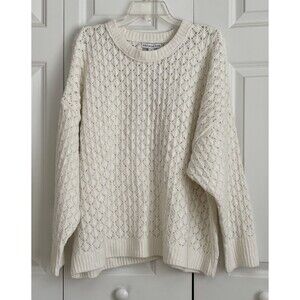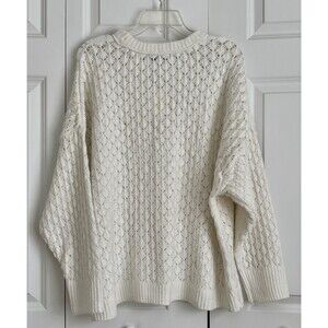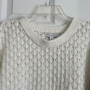 AND NOW THIS SWEATER WHITE OFF POINTELLE KNIT PLUS SIZE 2X/3X LONG SLEEVE PULLON