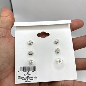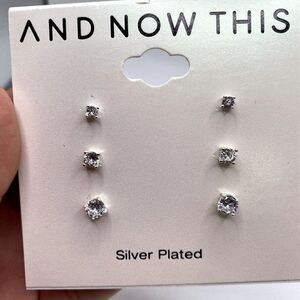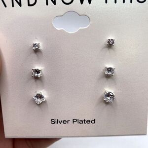 AND NOW THIS Women Set Stud Earrings Cubic Zirconia Clear Fine Silver Plated