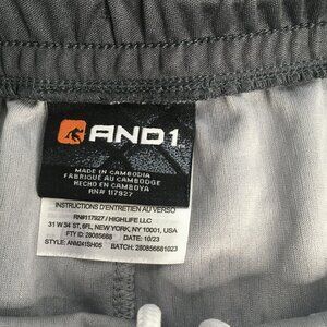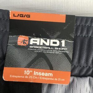 Features: 10 inch inseam; elastic waistband with internal drawcord; lightweight athletic mesh; contrast side panels; split hem; AND1 'Basketball Department 93' patch