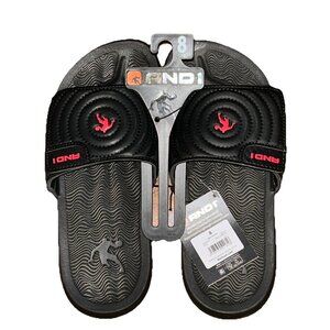 AND1 Men’s Athletic Adjustable Swirl Slide Sandals Black Size 8