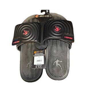 AND1 Men’s Athletic Adjustable Swirl Slide Sandals Black Size 9