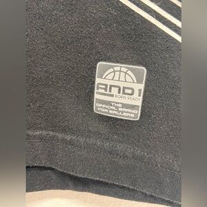 Born free on sleeve & And1 on same sleeve when rolled up. Plus AND1 on back across shoulder.