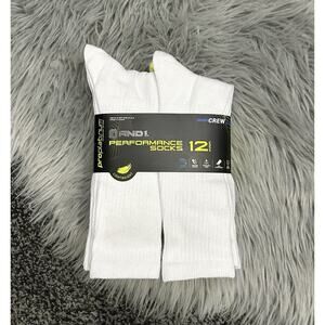 AND1 ProPlatinum Crew Socks White 12 Pair men's size 6-12.5 new