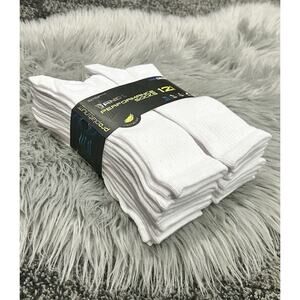 Elevate your sock game with these AND1 ProPlatinum Crew Socks. The pack includes 12 pairs of socks in a classic white color, perfect for casual or workwear occasions. Made of high-quality polyester material, these mid-calf socks are machine washable for easy care.