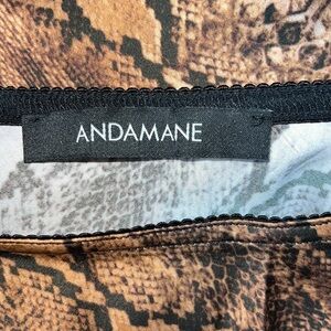 ANDAMANE BELLA PITON SNAKE PRINT MIDI SKIRT, Size XS, excellent preowned condition, 100% Polyester, chic neutral, elasticized waist, pull on style, slightly flared hem that accentuates your movementsđź’•