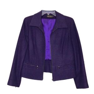 ANDEAN TRADITION - Alpaca Wool Purple Zip Front Blazer w/ Pockets - Size Medium