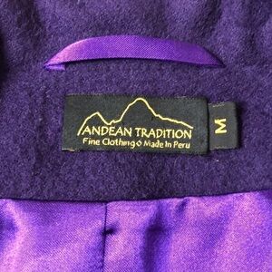 ANDEAN TRADITION - Baby Alpaca Wool Purple Zip Front Blazer w/ Pockets - Size Medium. Excellent pre-owned condition. Made in Peru.