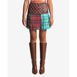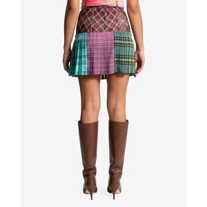Andersson Bell women's multi-print patch skirt. This skirt features a structured top and multi-colored check panels.