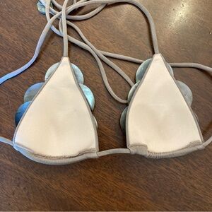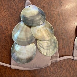 ANDI BAGUS Shell Bikini Top. New, but 1 shell broke off bottom of 1 cup. Lightly padded. Metallic bronze fabric. For Xs, small, medium