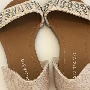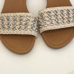 ANDIAMO Sandals Slip On Flats Rhinestone Cream Acaine Women’s Size 7