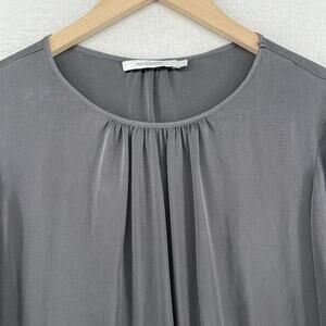 ANDIATA Blouse L Janni Silk Ruched Long Sleeve Stretch Round Neck Matte Gray
