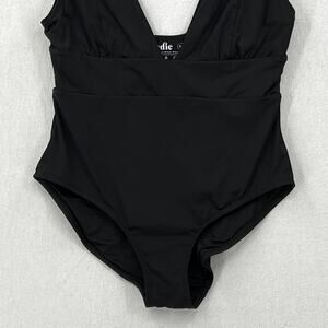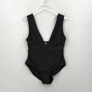 ANDIE Mykonos Classic One Piece Swimsuit Women XL Black Plunge V Neck Wide Strap