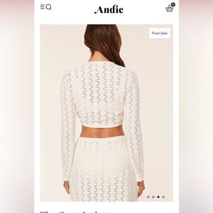 Elegant gardenia crochet jacket by Andie. Ideal for sunny days.