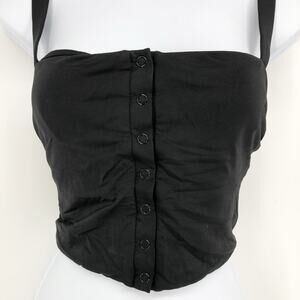 ANDIE SWIM Women's The Snap Top XL D Flat Black Square Neck NWT