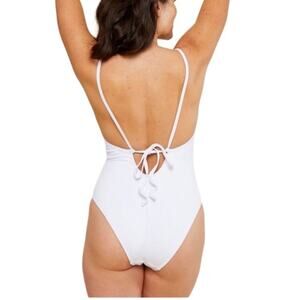 ANDIE The Paloma Ribbed One Pcs Swimsuit Sz M Lace Up White Feminine Retro NWT