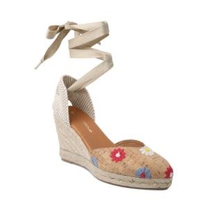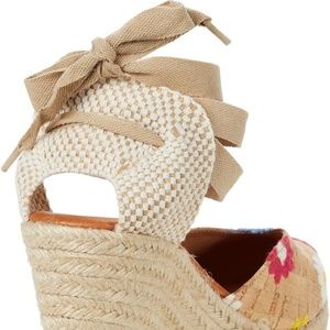 espadrille-style wedge styled with playful wraparound ankle ties.