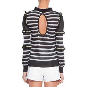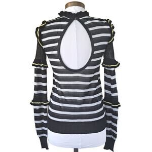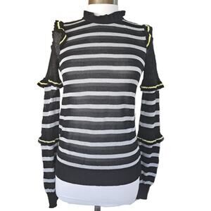 ANDREA BOGOSIAN Striped Marli Knit Top Size Small Black & White