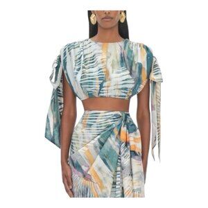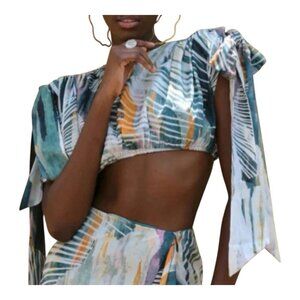 ANDREA IYAMAH HALIMA ABSTRACT BARK CROPPED TOP Size Large Tropical