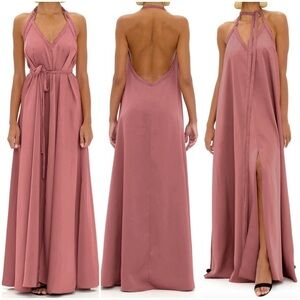 Ultra soft halter maxi dress with convertible self-tie that can be used at waist or neckline.