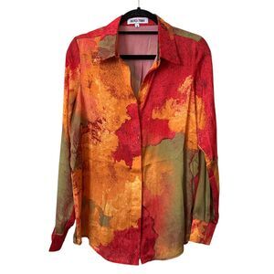 ANDREA IYAMAH Vana Printed Satin Button Down Medium