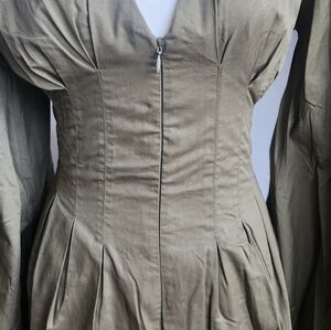Slim fit, v-neck, balloon sleeves, pleated, knee-length hem