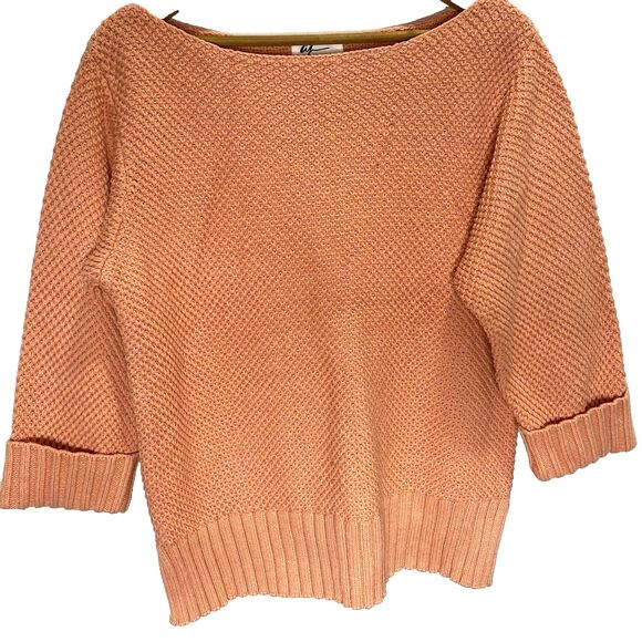 ANDREA JOVINE Sweater Waffle Knit Boat Neck 3/4 Sleeve Cotton Womens L Peach