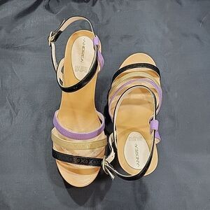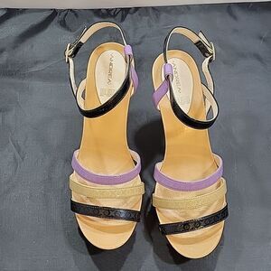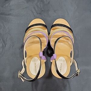 ANDREA MULTI-STRAPS HIGH HEEL STILETTOS SANDAL SIZE 91/2 MULTI-COLOR LIKE PURPLE, TAN, BLACK ADJUSTABLE BUCKLE ANKLE STRAP OPEN ALMOND TOE MADE WITH CORTE SINTETICO FORRO SINTETICO SUELA SINTETICO HEEL HEIGHT MEASUREMENTS APPROX 4"INCHES THIS ITEMS IS PRE-OWNED EXCELLENT CONDITION WITH ONLY LIGHT SIGNS OF WEAR IF ANY CHECK THE PICTURES