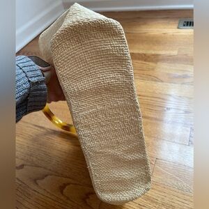 ANDREA STUART Vintage Straw Bag Embroidered Flowers W/ Beading Lucite Mini Tote