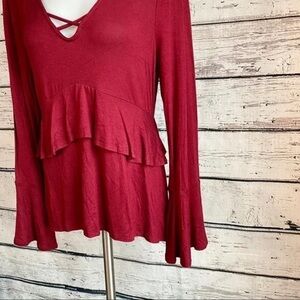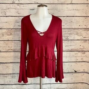 ANDREE BY UNIT Red Ruffled Bell Sleeve Blouse