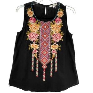 ANDREE By Unit Linen Blend Sleeveless Floral Embroidered Tank Tunic - Sz S