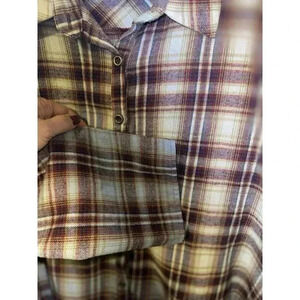 ANDREE By Unit Plaid Flannel Ombre Button Up Shirt Women’s Size Medium Boho roll sleeves