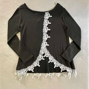 ANDREE’ by unit, DARK GREEN, LONG SLEEVE TOP WITH EMBROIDERY. SIZE L.