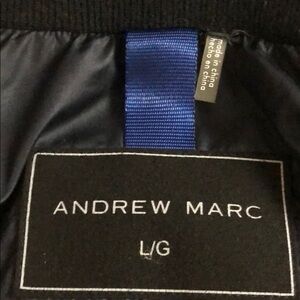 ANDREW MARC BLACKENED PUFF JACKET SIZE L/G inside pockets on both side out side pockets both side /sweater lined neck and sweater lined wrists