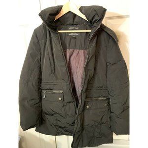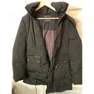 ANDREW MARC For BLOOMINGDALES Black COYOTE FUR HOODED Women’s COAT Sz L