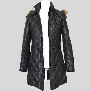 ANDREW MARC Kava Faux Fur Trim Quilted Down Drawstring Parka Coat Size XS