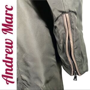 ANDREW MARC Olive Army Green Long Down Coat With Fur Trimmed Hood, Size Small